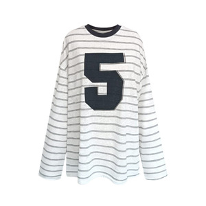 原版色织条 条纹球衣T恤显瘦休闲宽松时尚长袖上衣女白色灰色磨毛