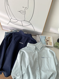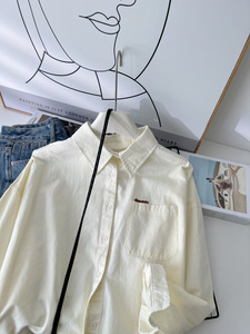OOTD2025秋季新韩国设计师休闲清爽翻领宽松防晒刺绣长袖衬衫6270