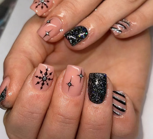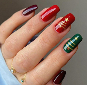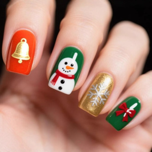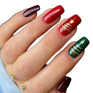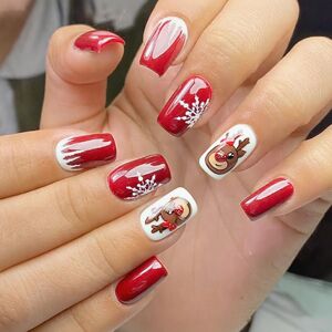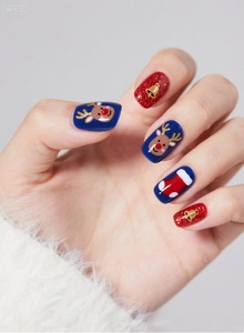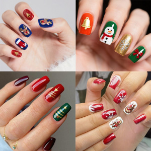外贸新款美甲甲片欧美节日圣诞节日元素中长款方形穿戴甲甲片批发
