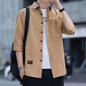 2025年高档夏季短袖衬衫半袖男宽松版七分袖衬衣工装中袖