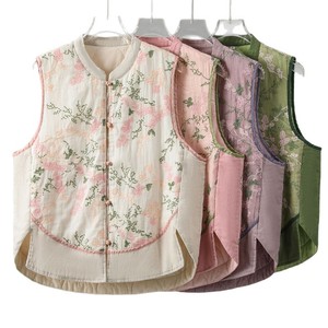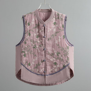 新中式国风马甲亚麻重工刺绣坎肩背心秋冬盘扣马夹无袖夹棉外套女