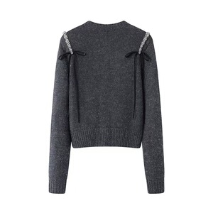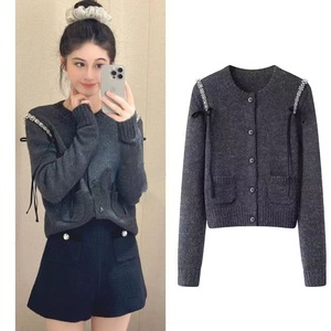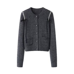 2025秋新款时尚圆领钉珠亮钻装饰针织开衫外套女Q163401E