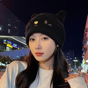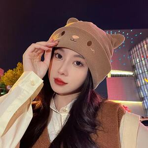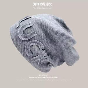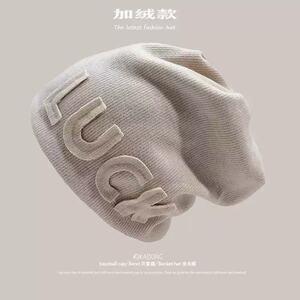 网红堆堆帽女产后月子帽春秋时尚字母日系毛线针织包头帽春季冷帽