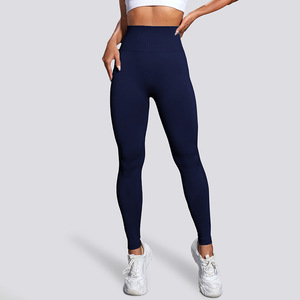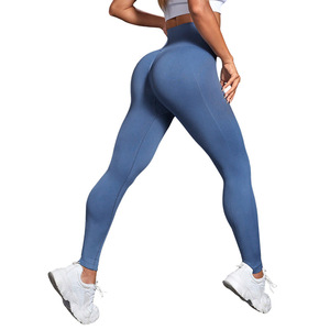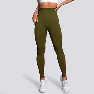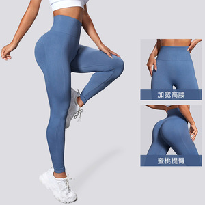 欧美无缝纯色高腰收腹提臀健身裤女运动紧身显高蜜桃翘臀瑜伽裤