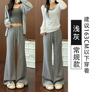 浅灰色微喇运动卫裤女2025新款秋季垂感高腰显瘦阔腿喇叭裤休闲裤