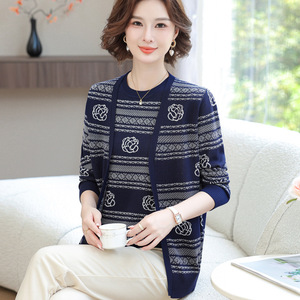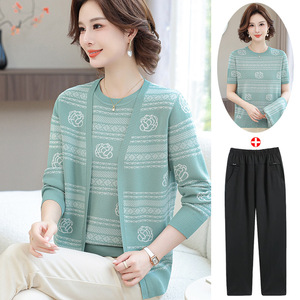 妈妈秋装2025新款针织衫两件套洋气上衣服中老年女装春秋开衫外套