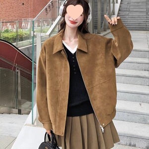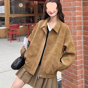 咖色美拉德麂皮绒外套女2025秋季新款小个子美式复古拉链翻领夹克