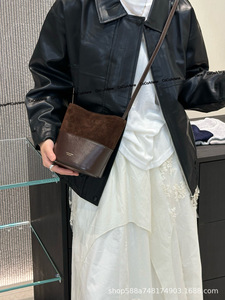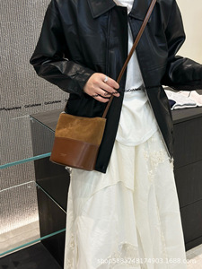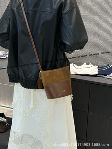 磨砂真皮水桶包包女2025新款高级感时尚单肩包复古拼接斜挎包小包