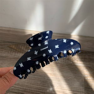 小众墨蓝色醋酸碎花字母抓夹中号发抓文艺风发卡发饰新款鲨鱼夹子