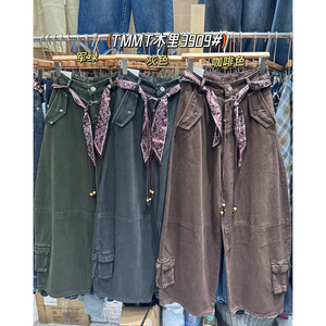 JIAJIATMMT木里-美拉德色系工装裤阔腿拖地裤牛仔裤(配丝巾)3909