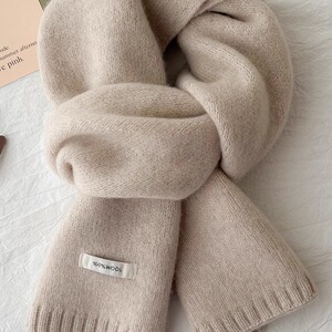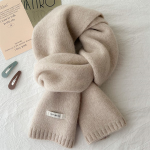 高品质100%纯羊毛围巾女冬季保暖简约针织百搭韩版纯色围脖情侣款