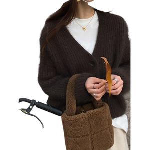 时尚软糯亲肤仿貂绒毛衣开衫外套宽松休闲感毛绒绒针织衫披肩上衣