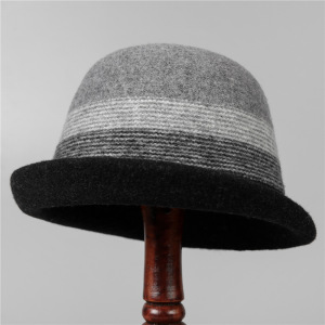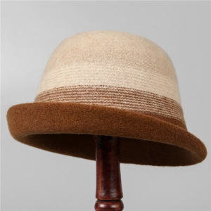 帽子女秋冬新款拼色保暖羊毛呢卷边盆帽赫本风优雅百搭妈妈渔夫帽