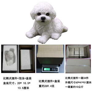 仿真可爱比熊犬模型摆件跨境树脂工艺品车内装饰家居小狗生日礼物