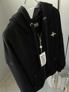高品质~SMFK十字花经典拉链帽衫宽松防风百搭连帽卫衣外套女