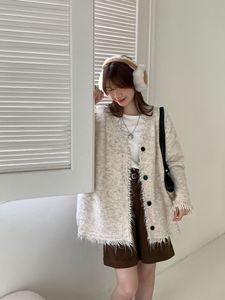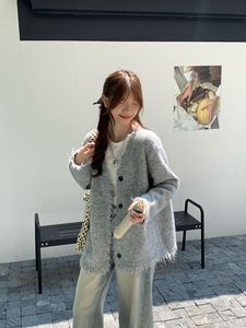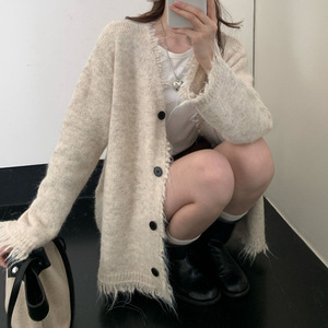 流苏边设计感复古纯色针织开衫女秋冬长袖宽松别致韩版毛衣外套潮