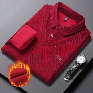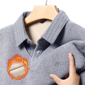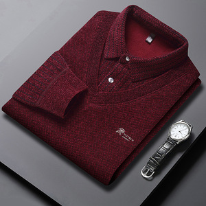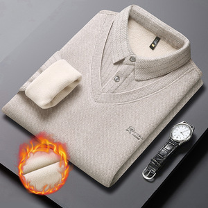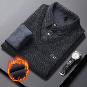 源头工厂男士雪貂绒毛衣加绒加厚假两件秋冬新款长袖衬衫领打底衫