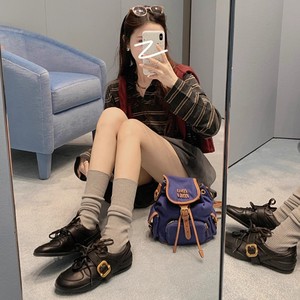 牛皮版~真皮复古风皮带扣德训鞋女软底系带休闲运动芭蕾舞小皮鞋
