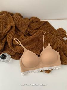 8355#外扩漫画胸Bra粉底液隐形蕾丝拼接花边舒适聚拢螺纹内衣女