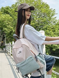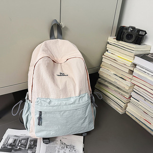 高颜值撞色双肩包女大容量简约休闲学生书包休闲户外骑行百搭背包