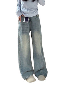 浅色阔腿牛仔裤女高腰秋季新款大码胖mm宽松显瘦梨形身材直筒裤子