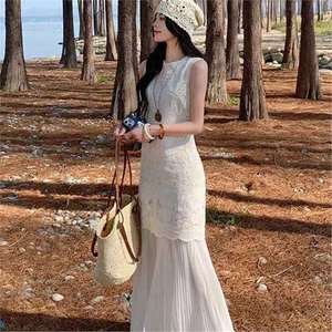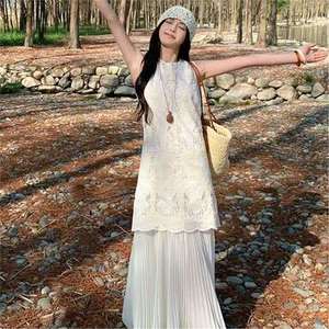2025重工绣花假两件拼接无袖连衣裙新款高级气质法式背心裙