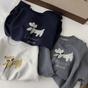 韩系简约狗狗印花落肩款休闲百搭圆领卫衣女日系宽松休闲百搭上衣