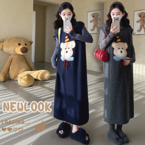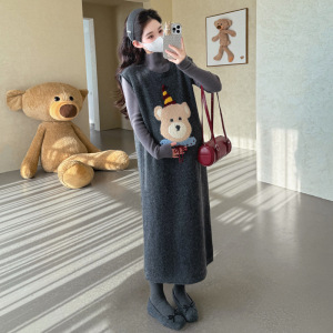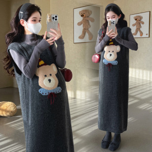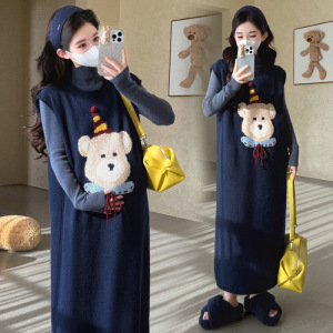孕妇秋装套装2025新款时尚连衣裙秋冬季毛衣背心裙打底上衣两件套