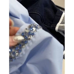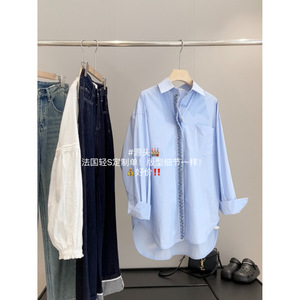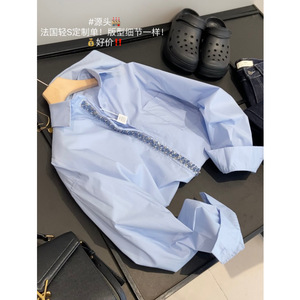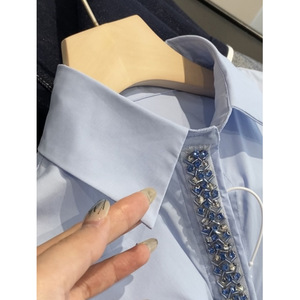 泽黛佳伊轻奢线!高级感小众设计60支天丝棉水钻门襟长袖翻领衬衫