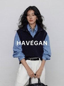 与间HAVEGAN/秋季翻领无袖针织毛衣背心女老钱风软糯马甲外穿上衣