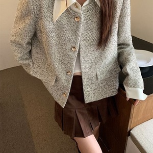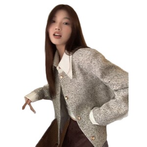 小香风外套春秋新款POLO领2025短外套短款气质粗花呢高级上衣女装