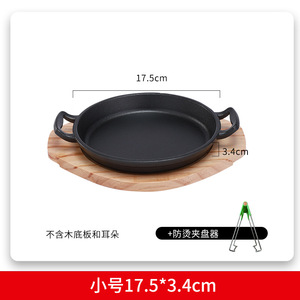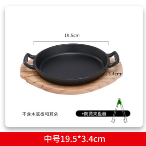 韩式加厚铁板烧盘铸铁烤盘配木板家用电磁炉圆形煎牛排烤肉锅商用