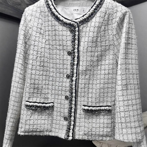 现货小林家同款 柏林序曲 名品小香白金编织呢斗篷外套女名媛上衣