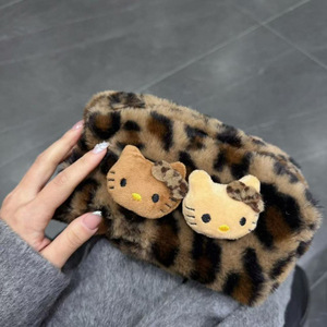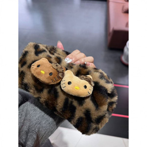 新款ins豹纹kitty毛绒化妆包女便携式旅行手拿洗漱包大容量收纳包