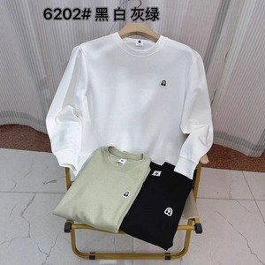 春冬款高档潮流宽松简约透气舒适小标签男式长袖长优棉男T恤打底