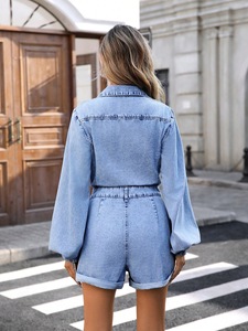 X-16238#欧美亚马逊速卖通女装跨境直筒宽松长袖牛仔连体裤