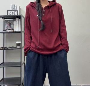 连帽长袖T恤打底衫女 秋款 文艺复古时尚百搭减龄休闲宽松内搭ins