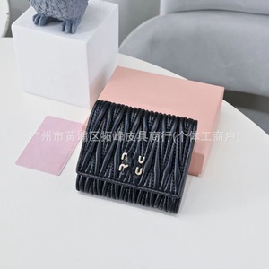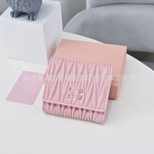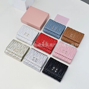 跨境缪家羊皮褶皱三折钱包女士清新甜美钱夹大容量多卡位零钱包女
