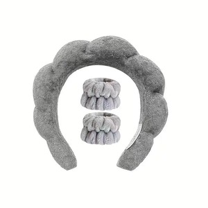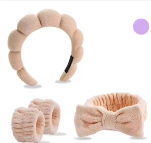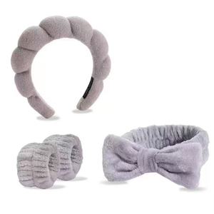 跨境海绵云朵发箍批发高颅顶高级感毛巾布麻花女士洗脸手腕带头箍