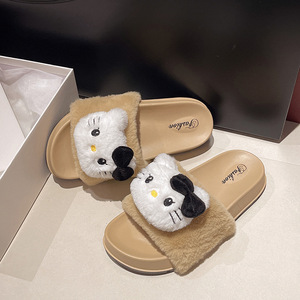 凯蒂猫毛毛拖鞋女秋冬外穿2025年新款厚底卡通软乎乎防滑保暖棉拖