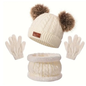儿童秋冬围脖帽子套装针织毛线帽脖套保暖宝宝帽子围巾三件套加绒