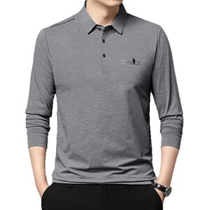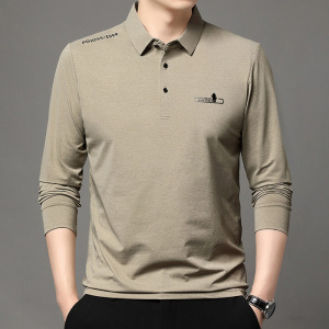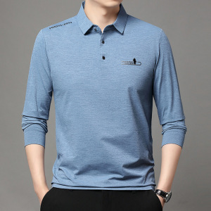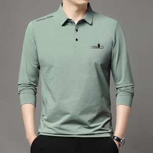 源头工厂长袖翻领Polo衫中年男士宽松简约休闲透气舒适t恤打底衫