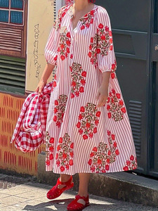 10835 跨境欧美亚马逊女士宽松休闲度假V领七分袖连衣裙