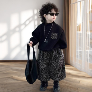 男童秋季套装春秋休闲豹纹2025韩版新款儿童洋气时尚两件套