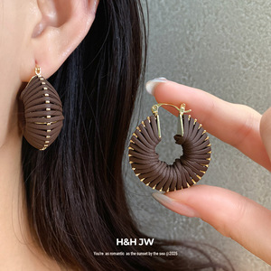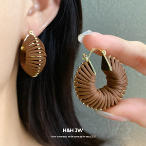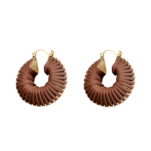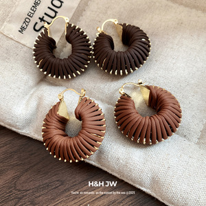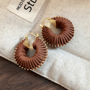 皮革编织圆形耳扣欧美复古百搭个性耳环轻奢高级感耳饰设计感小众