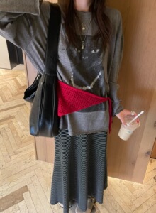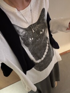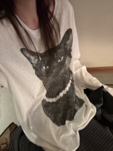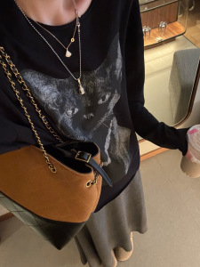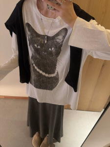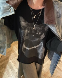 2025秋季新款慵懒风大版遮肉长袖T恤衫宽松百搭猫咪设计感卡通t恤