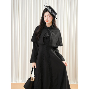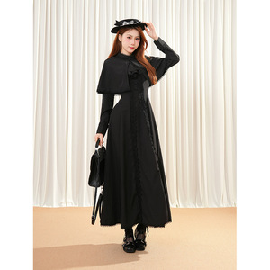 梦魇魔女夜 日系哥特暗黑修女设计感lolita长袖连衣裙披肩套装