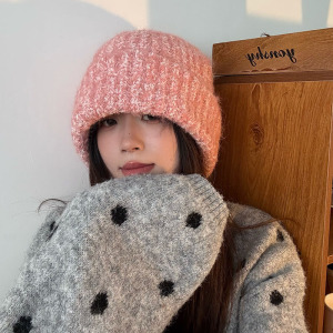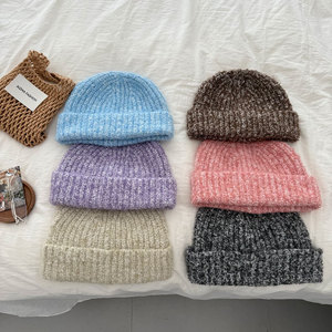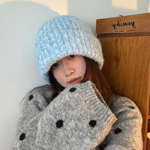韩国订单*云朵绵绵*含羊毛混线点点韩版针织帽秋冬帽子保暖毛线帽