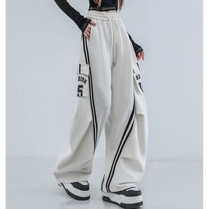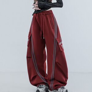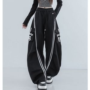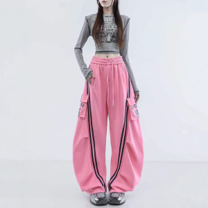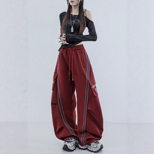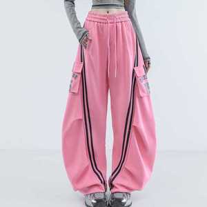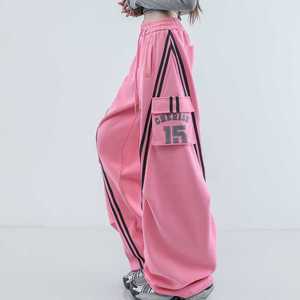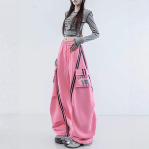 G7X2025秋装新款个性织带卫裤女印花时尚休闲运动高腰宽松阔腿弯