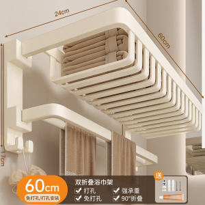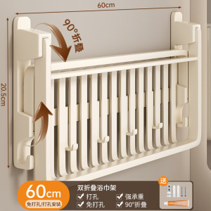 【旗舰款】奶油白升级下折叠带钩毛巾架60cm★